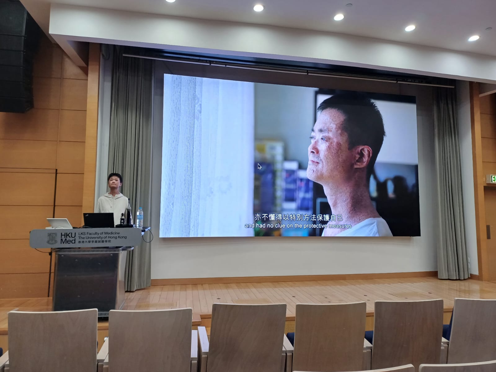 2025年11月26日,真正踏上講台的那一刻,出奇地沒有太多複雜情緒,只有輕微的緊張與興奮。我盡情地向同學們分享自己在香港獨一無二的病歷,以及在生命中的種種體驗。 過程中,我特別加入了自己與護理人員在手術室的片段,試圖帶出手術前他們對我的關心,那確實是一段難忘的經歷。亦出呼意料地引起同學們的共鳴——我看見幾位同學向我點頭,有笑聲、有互動,那一刻感到一切都值得。