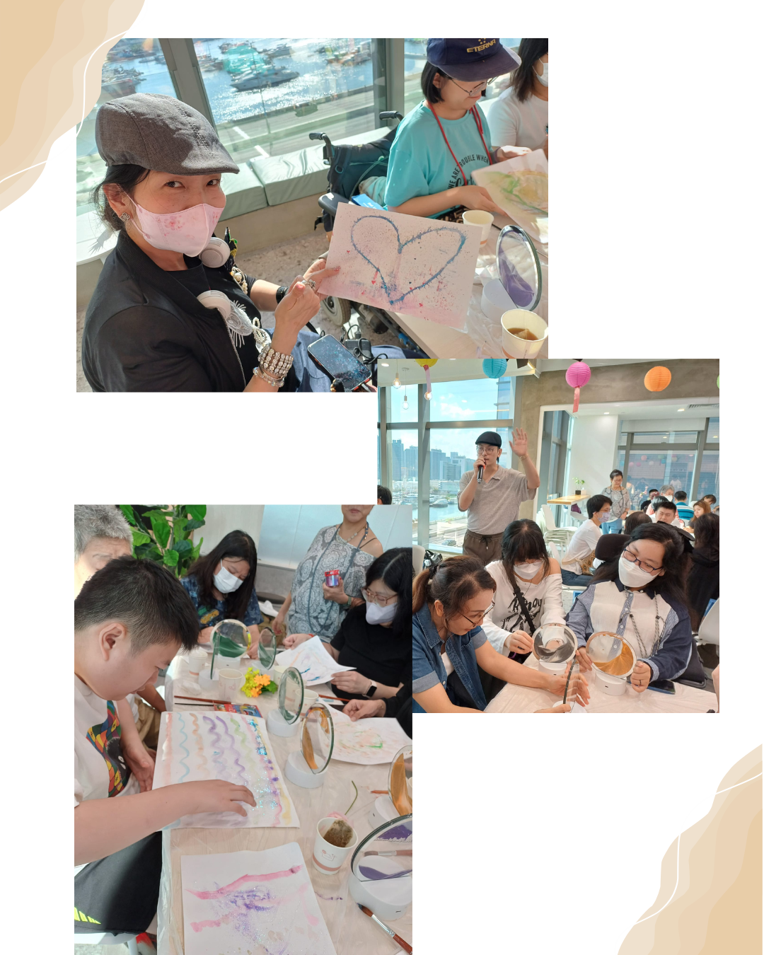 本次工作坊以「正念(Mindfulness)」為主題,結合流沙畫創作與茶畫技巧,透過藝術與靜觀的融合,為罕見病患者及其照顧者打造一個身心療癒的空間。活動由專業導師 Derek 帶領,參加者在輕鬆愉快的氛圍中,以七彩流沙創作獨一無二的沙畫燈座,感受沙子自然流動所帶來的療癒力量。